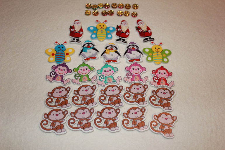 4. Деревянные пуговицы: Санта Клаус, Бабочка, Обезьянки; Разделители для бусин