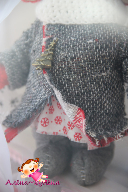 .... 5-ти шплинтовое крепление ручек-ножек-головы, синтепух, акриловые и масляные краски, тонированная бязь... Одета в платье из германского хлопка, пальтишко из какой-то ну очень старенькой ткани...валенки большущего размера...шапочка...шарф...такая вот сиротинушка получилась...донашивающая одежку за старшими...