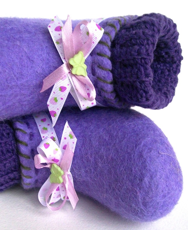 Сваляны из натуральной шерсти высокого качества , тепленькие и не колючие. Трикотажные резиночки дополнительно утепляют и удерживают пинеточки на ножке. Размер 14 -14, 5 см по стопе.