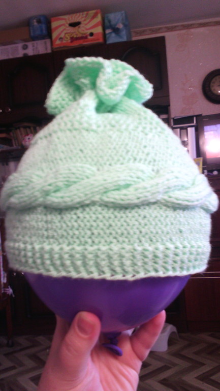 Вот такая шапочка для младшей дочери связалась на весну за пару дней. Подклад не делала так как носить будем с нижней шапочкой с мысиком. Её тоже свяжу на днях.Нитки акация цвет спелый салат, вязала в две нити. На обхват ноловы 43 см. Цвет на фото вообще не передался.