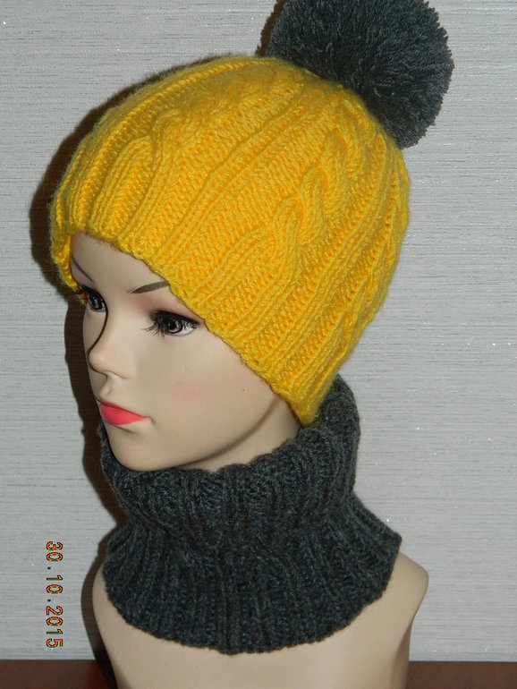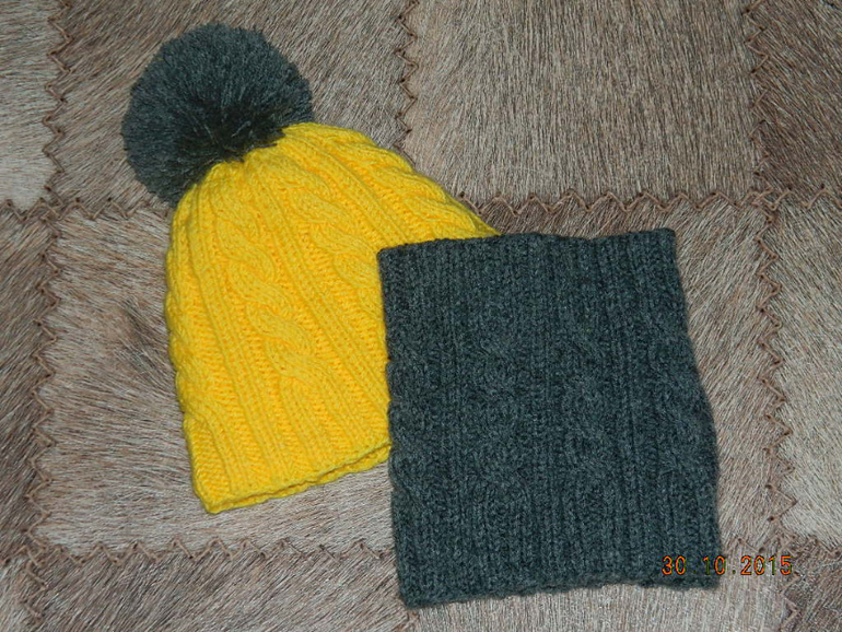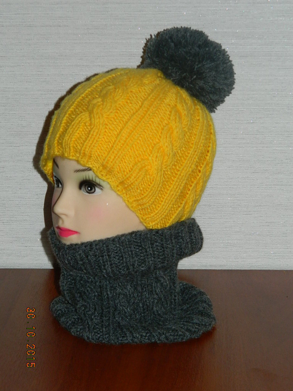 Вязание спицамиШапка связана в 2 нити Naco Bambino, утеплена флисом, на ог 49 см, но и на 51 см хорошо сидит. Снуд из Alize Superlana TIG тоже в 2 нити. Помпон съемный.