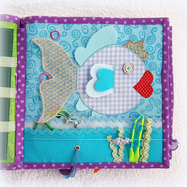 Хвостик шуршит, внизу плавают рыбки, в волнах прячется дельфин. За хвостиком шнуровочка с водорослями.