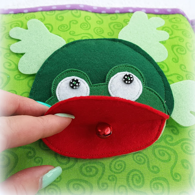 Лягушка является к тому же самостоятельной игрушкой. Во рту вшит бубенчик,