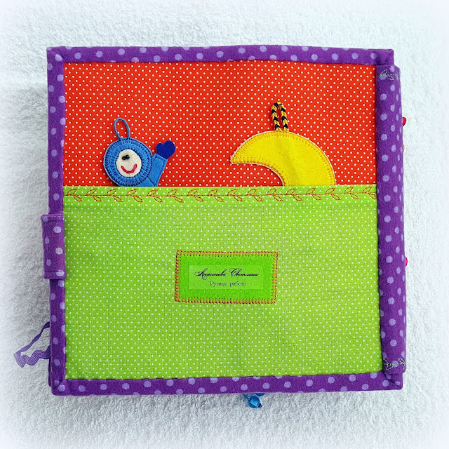 Книжка упаковывается вот в такую сумочку, сшитую из обложки для контурной карты и остатков тряпочек. Имеется кармашек для визиточки.