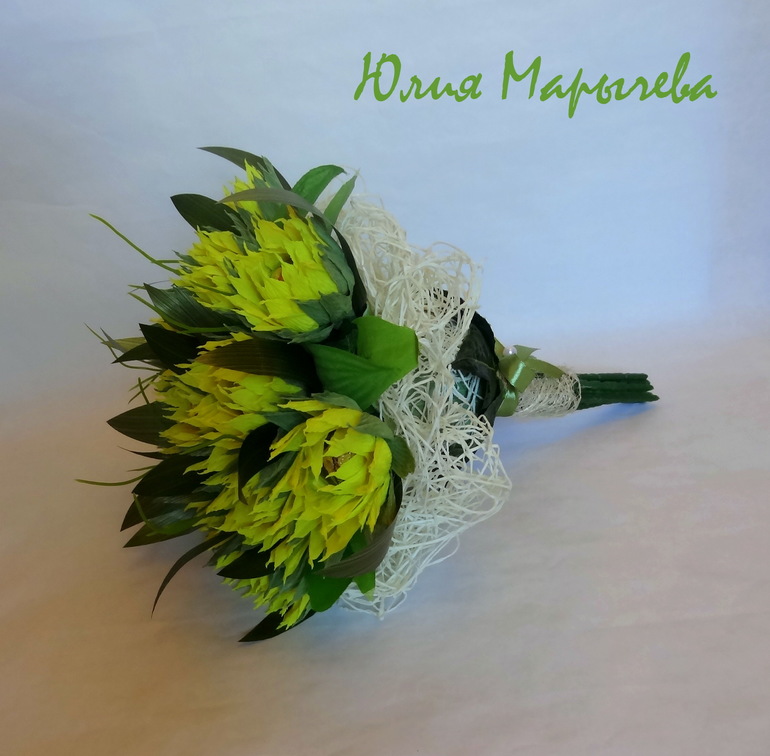 Привет. Подсолнухи или нет неважно. Букет красивый, очень нравится оформление ножки букета.