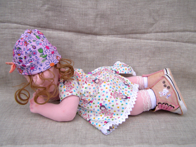 Кукольный мир - человекоподобные куклыНовая малышка..ну как малышка ..около 50см.)) Шила её долго, с третьей попытки..получилось то..что хотели.) В итоге девочка хорошо сидит,лежит.Стоит неуверенно...оно и понятно маленькая ещё...только топать начала)). Вся одёжка съёмная. Малышка игровая, ножки и ручки подвижные. Все пришито армированными нитками с расчетом на активные игры ее двухгодовалой хозяйки). Заказ для меня сложный...все таки маленькие куклы мне ближе...но зато какой опыт))). Куколка уже у новой чудесной хозяюшки...чему я очень рада)).