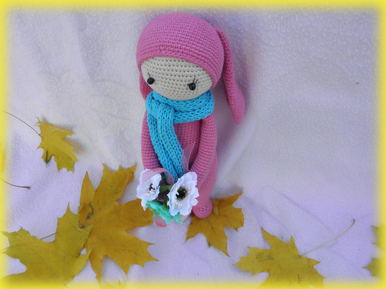 Связана эта девочка из пряжи YarnArt Jeans,очень плотно набита синтепончиком.Ростом 28см.