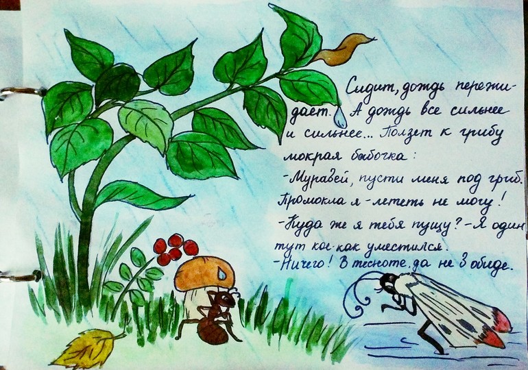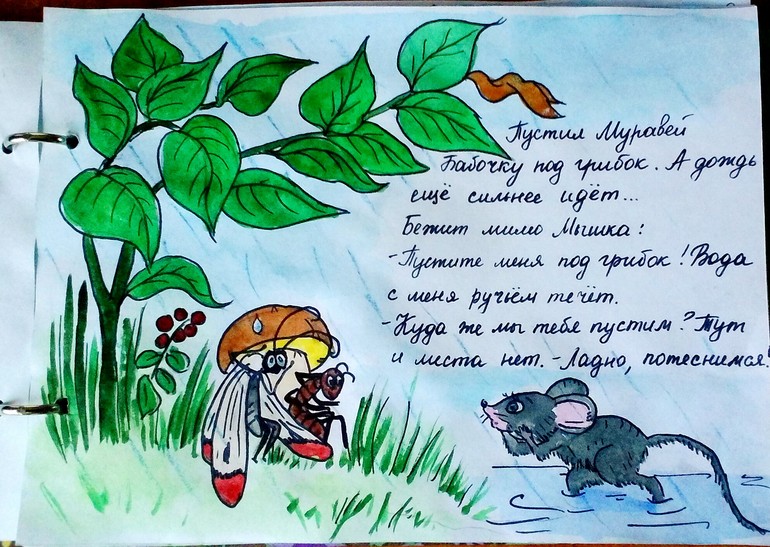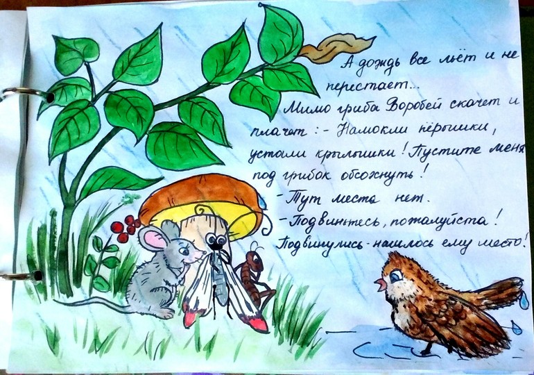 Живопись, точечная росписьВ сад задали сделать книжку-малышку на любую тему. Мы решили сделать книжку-сказку : "Под Грибом" . Сегодня целый день рисовали, разукрашивали))) Дочка рисовала себе как могла!))) Потом сделали обложку...получилась вот такая книжечка!!!! Строго не судите))) делали первый раз!!!