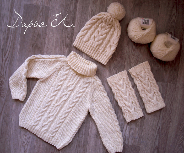 Всем привет))) Этот милый комплект связался для маленькой девочки из пряжи вкусного молочного цвета. Времени, чтобы его воплотить потребовалось больше, чем планировалось, но это того стоило. Очень надеюсь, что хозяйка тоже оценит. Нитки Ализе бэби вул, спицы 2,5, на спинке рисунок такой же.