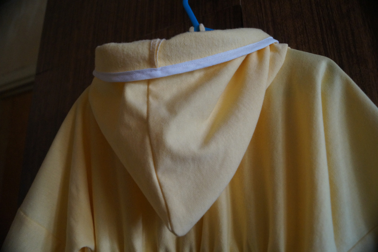 Я даже не искала халат. Сразу решила сшить пончо-полотенце. Стала искать ткань. Нашла только пеленку трикотажную на фланели. Очень приятная на ощупь и мягкая.