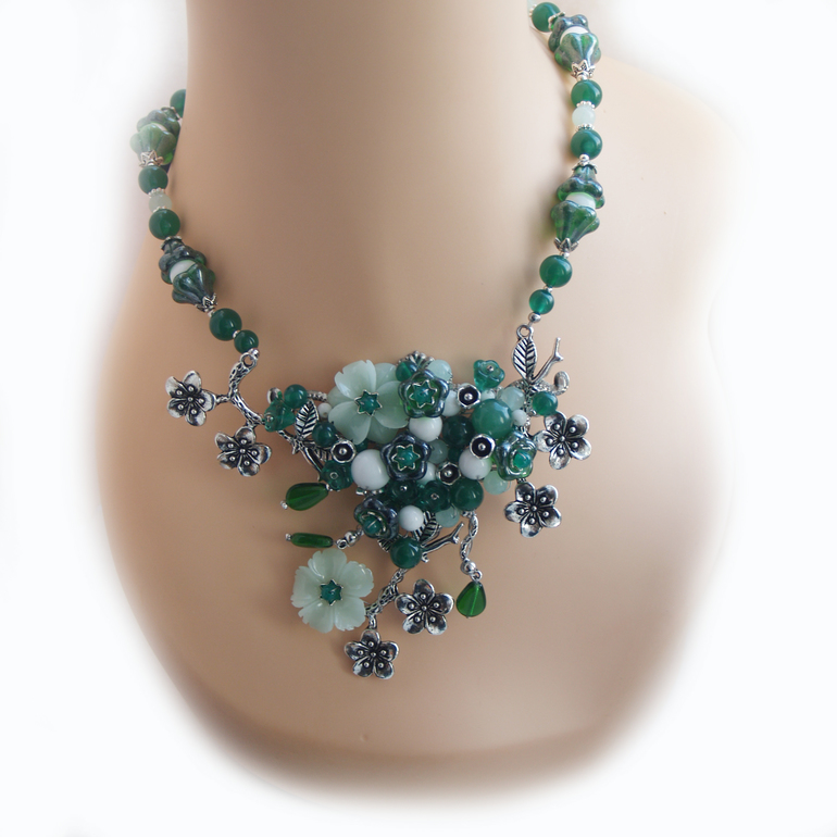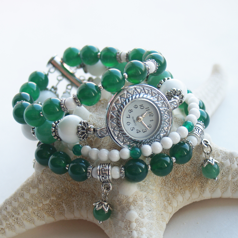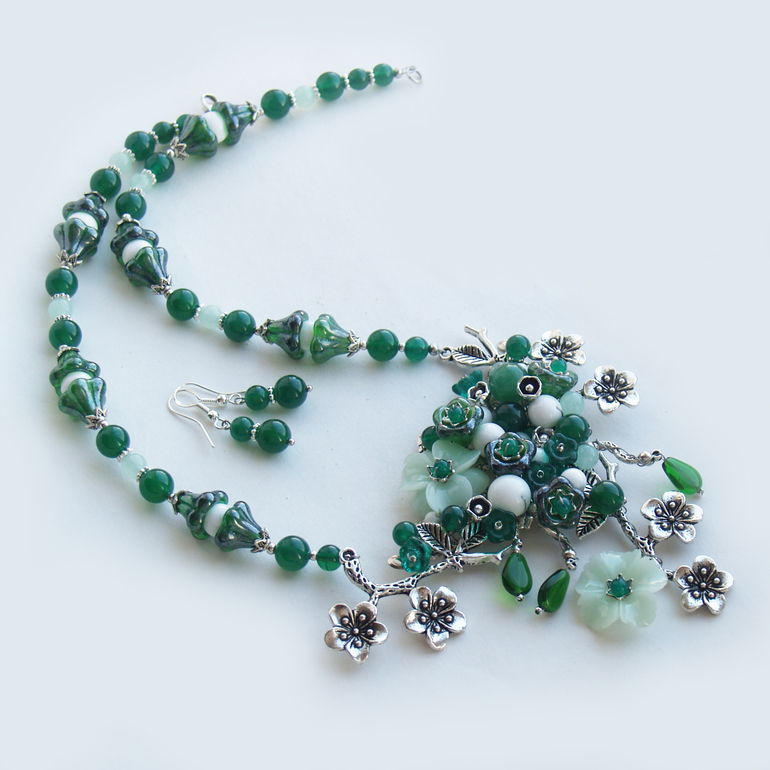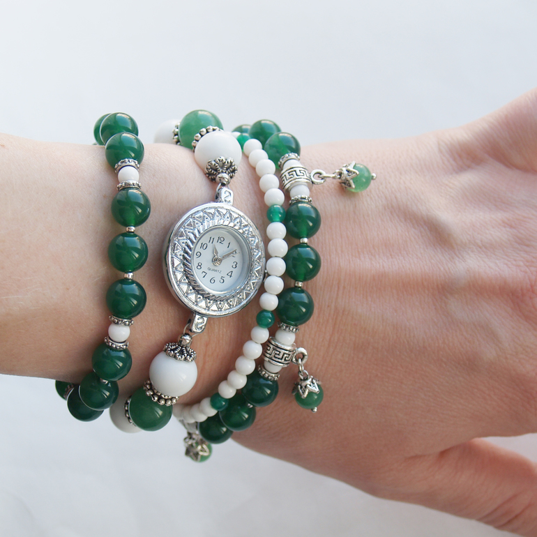 Бижутерия для слингомам. Слингобусы. Грызунки.Комплект украшений в зелено-белых тонах.