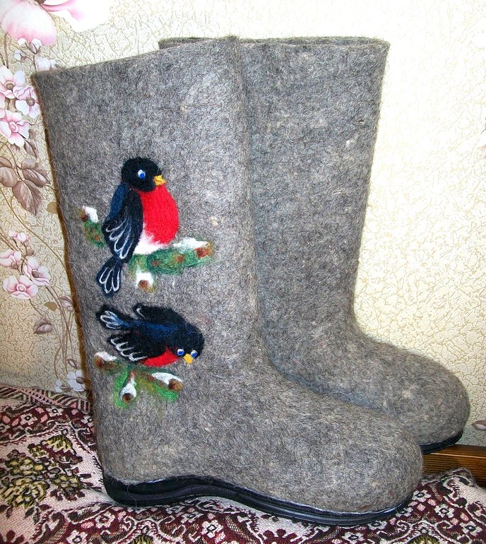 По этому не удивилась такому заказу - взрослые валенки со снегирями!