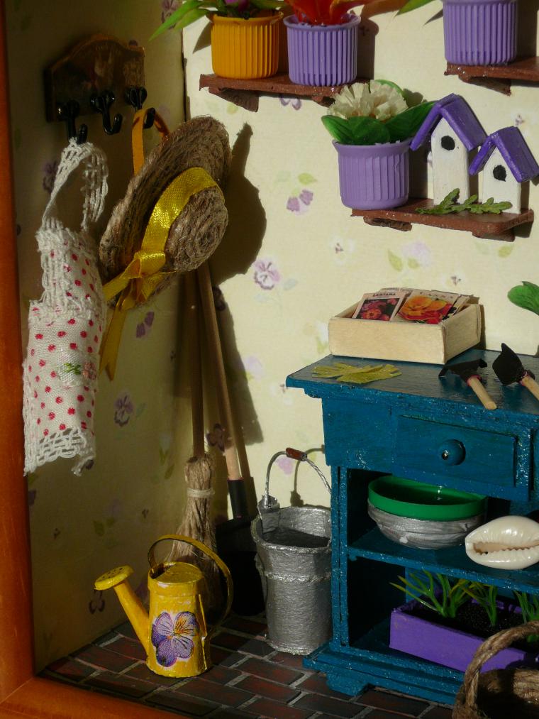 Здравствуйте мои хорошие друзья,подписчики, заказчики и просто любители миниатюрных миров.Хочу представить Вашему вниманию Румбокс Уголок садовника в фоторамке, изображает уголок сада, где садовник проводит большую часть своего дня. Можно видеть различные цветы в фигурных вазонах, пару скворечников, ящик с рассадой.Уголок садовника может использоваться для декора интерьера.Кроме цветов ничего не зафиксировано можно переставлять по своему усмотрению.Может использоваться в качестве игрушки ребенком только старшего возраста.Все детали выполнены вручную.