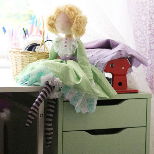 Эмили сшита из хлопка. Для головы использовался кукольный трикотаж. Лицо - роспись (пастель, акрил)