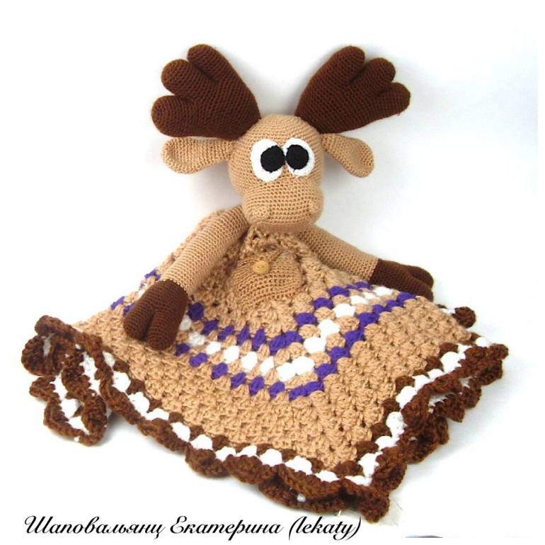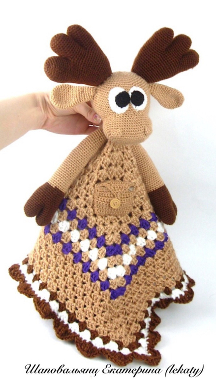 Игрушечный мир - животныеИгрушка-комфортер "Лосяш" ароматизированный, на груди кармашек, куда спрятано ароматное лавандовое саше с натуральными цветами лаванды. Игрушка большая, для малыша Артема 6 мес. Новорожденному такой размерчик будет большим))) Вязался на заказ, с большим удовольствием!