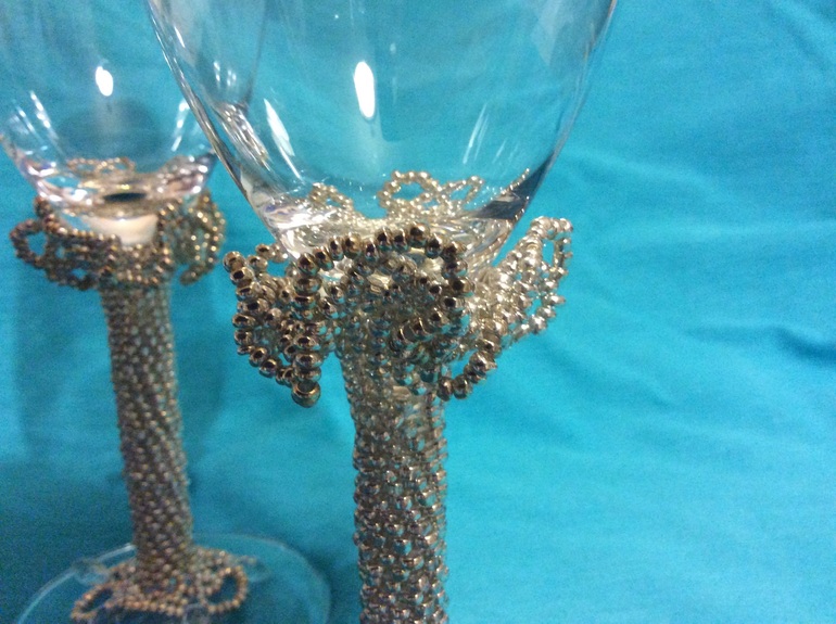 Бисер. Бисероплетение. Украшения из бисера.Вот сотворилось, девочки если порекомендуете что и как на сам бокал повесить буду благодарна))). Мне кажеться есть в них какая-то незаконченность(((.