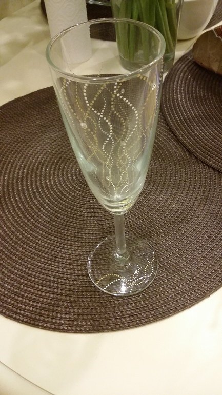 Че то я не подумала, что там дырки) я бокалы себе декорировала акриловыми красками на свадьбу)