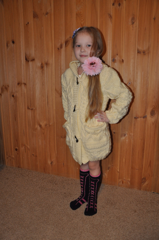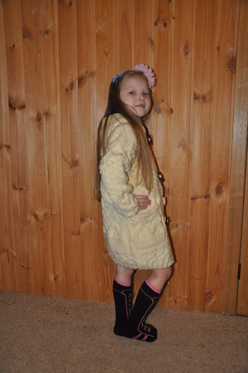 Был у меня еще один замечательный обмен. Посылку получила наверное еще 1-1,5 мес. назад. Анечка связала нам очень теплый, мягкий, к телу приятный и самое главное очень красивый Кардиган. Вязала по моим меркам. На фото мерили на одну маечку. Велик нам немного, но это нормально. К следующему сезону будет как раз. И еще положила нам маленькие подарочки, чему отдельная благодарность. Дочке-заколочки, сыночку-шапочка. Аня, шапочка ему как раз и так ему идет. очень прикольно выглядит он в нем.