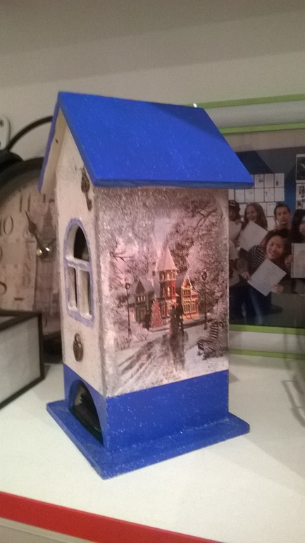 Очень хорошо! Единственное, мне кажется, что синий цвет основания и крыши немного упрощает. Может надо было пустить какой -нибудь орнамент? А вообщем очень здорово. Я забросила декупаж после рождения младшей и очень сейчас скучаю, но сил и времени пока нет.