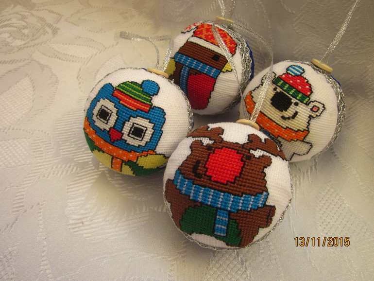 Игрушки на елку с вышивкой
