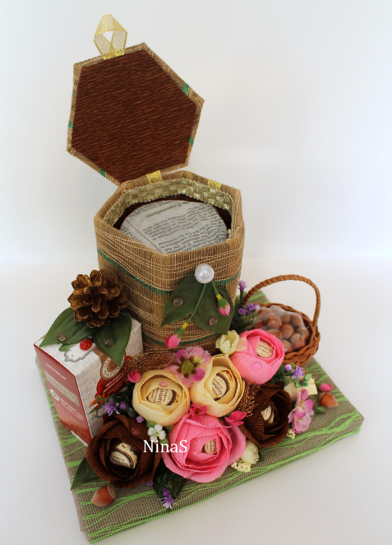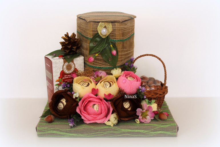 Букеты из конфет. Свитдизайн.Уже руки чешутся по новогодке) Пока покажу, что наработалось за месяц примерно. Сегодня вот закончила бочонок меда. Идея Е.Франскевич, исполнение в деталях мое.