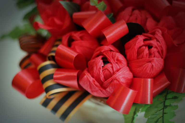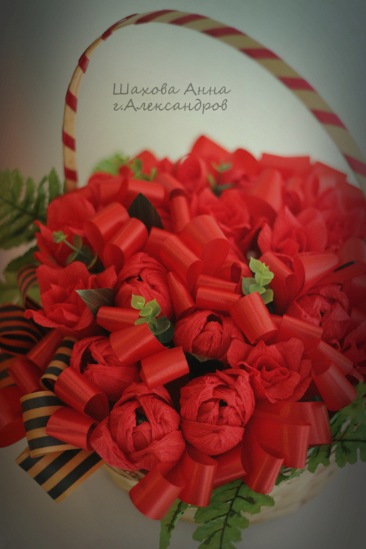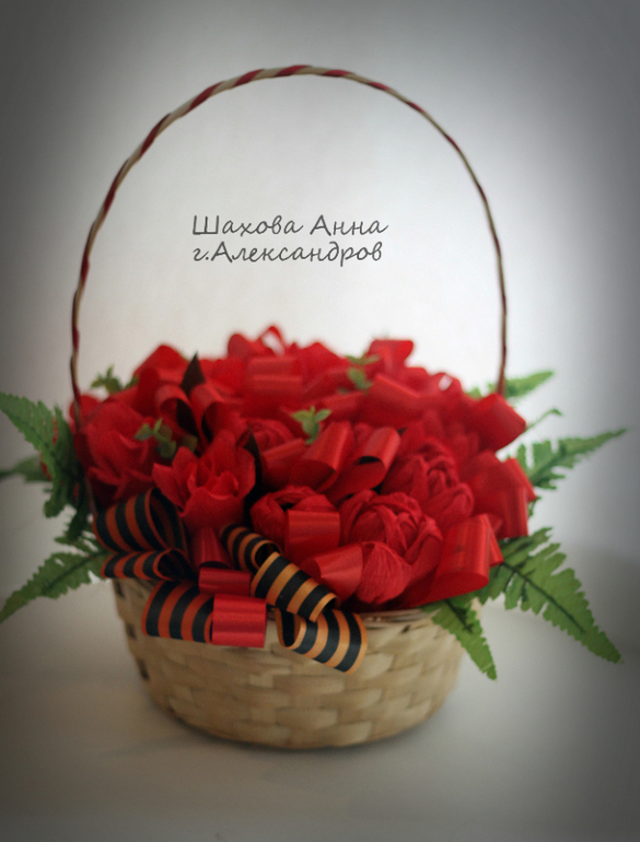 Букет в корзине ко Дню Победы на конкурс и в подарок ветерану!