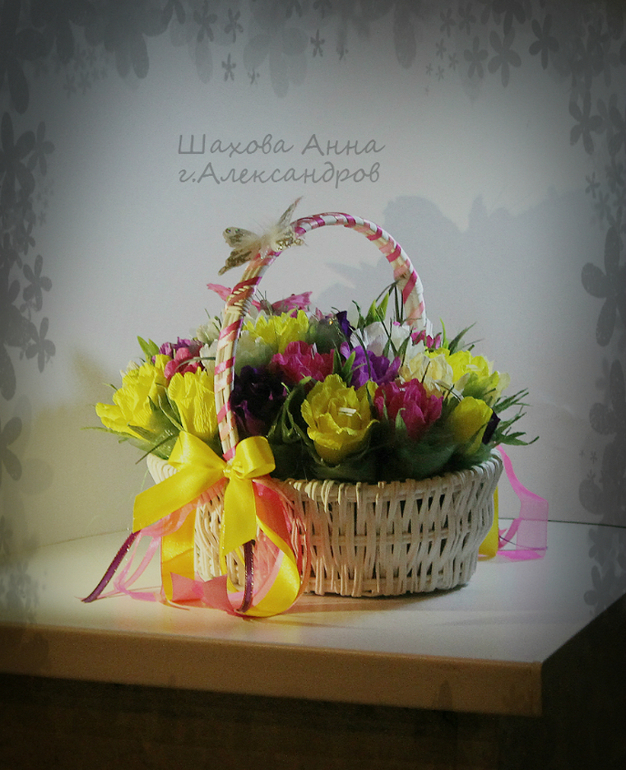 Был заказ на Оочень яркую корзину, вот что вышло, заказчице понравилась!
