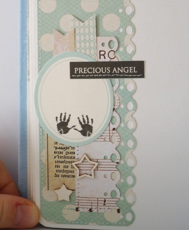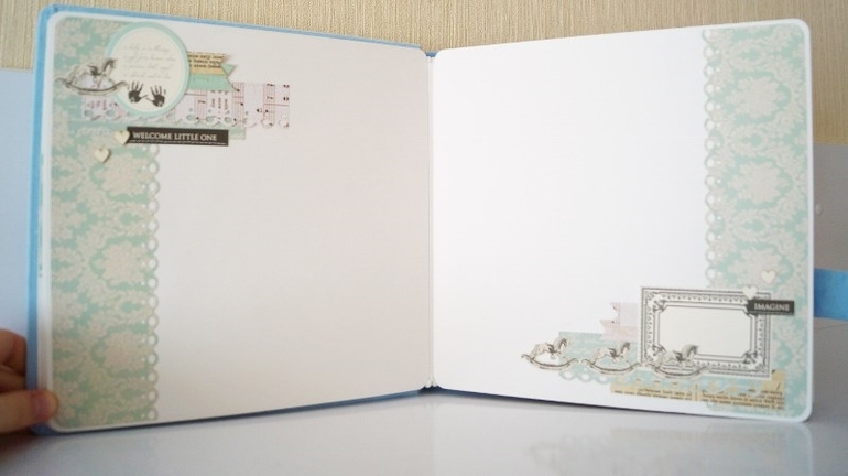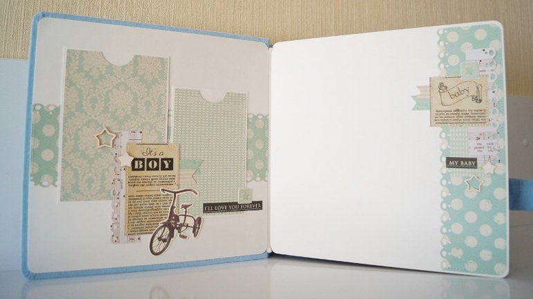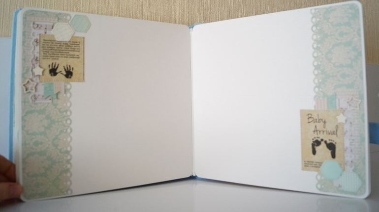 на первом форзаце предусмотрено два кармашка для бирочки из роддома и например фото с УЗИ.