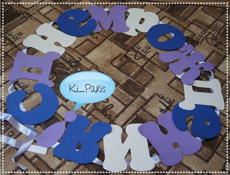 Изделия из бумаги, папье-маше, квиллинг.Вот такой был интересный заказ. Растяжка из дизайнерского картона С ДНЕМ РОЖДЕНИЯ! и МИШЕ 1 ГОДИК с помпонами тишью
