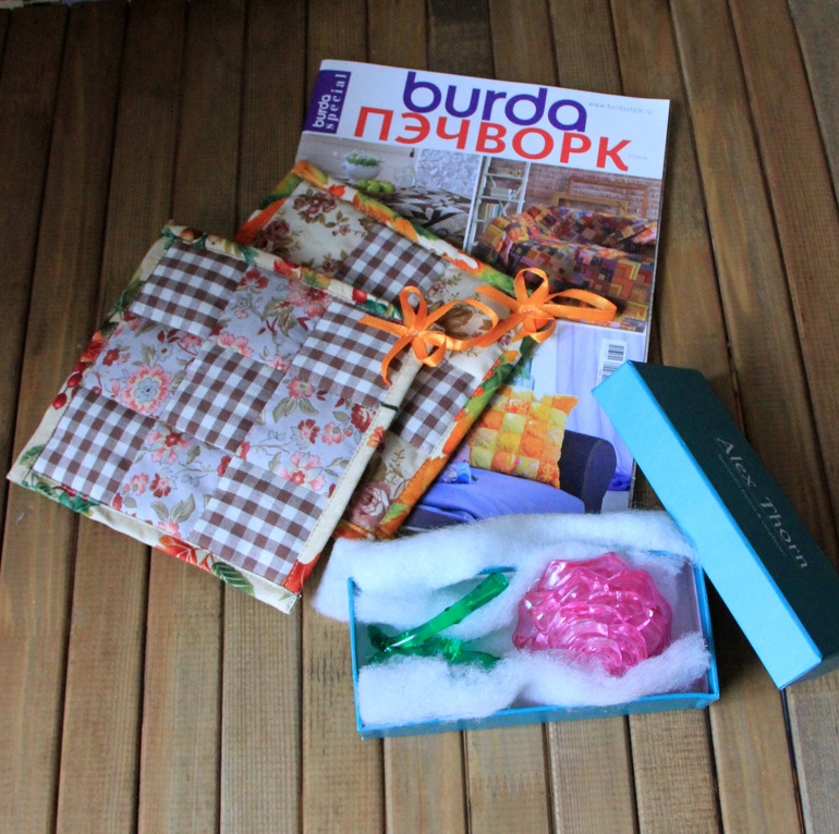 Это прихватки, журнал Бурда пэчворк и 3Д-пазл роза.