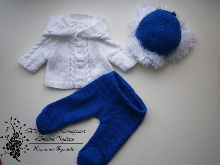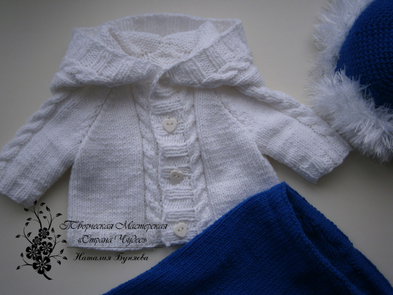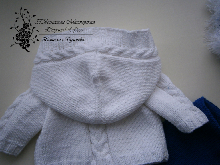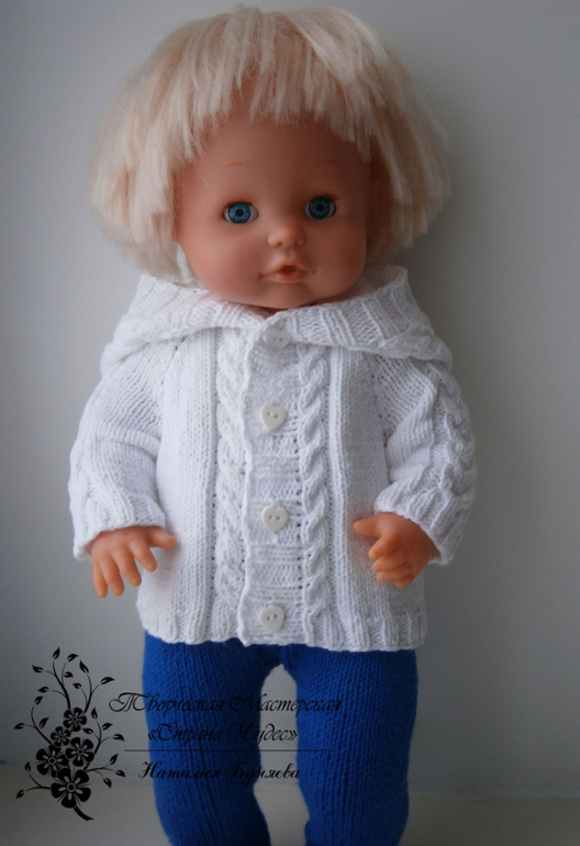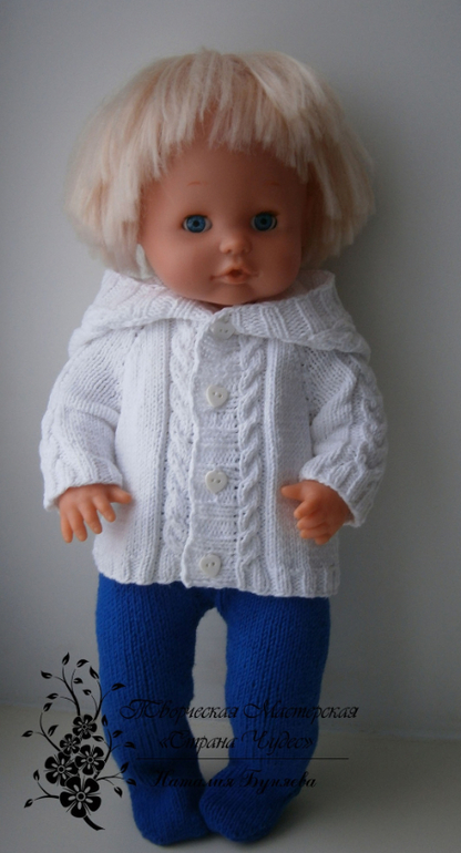 Комплект решила не мудрить,связала как у домашней куклены, но увы не нашла разъемной молнии небольших размеров белого цвета, поэтому было решено вязать капюшон и делать планки с пуговками. Фу, ушли все остатки...УРРРА! уже год лежат и наконец-то я их использовала.Теперь понимаю, а вот для чего они лежали.