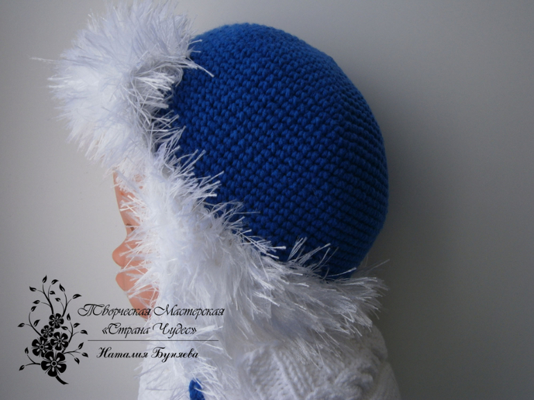 И тут захотелось дополнить шапкой-мишкой, но в процессе вязания, я резко поменяла планы.