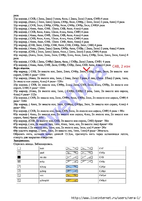 Вязала по схеме ниже, получилось 56 рядов, дальше решила, что для меня по высоте достаточно и просто закрыла петли в кольцо.