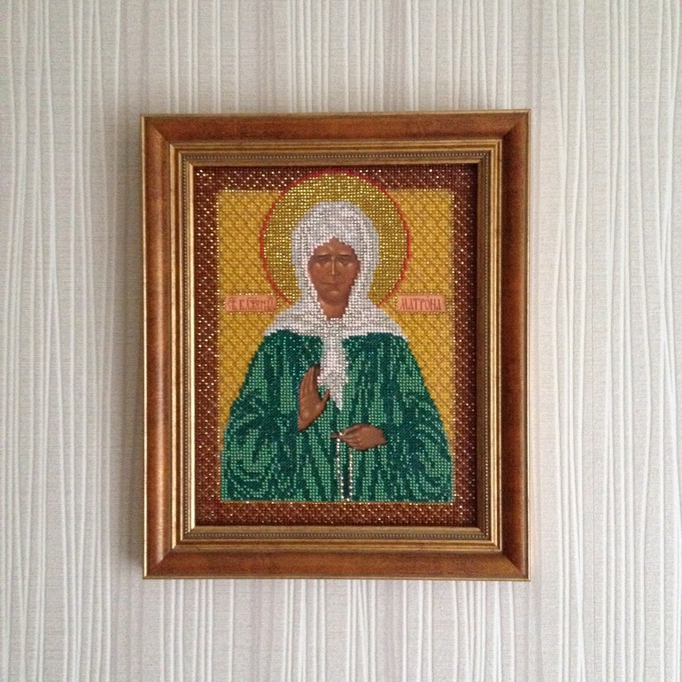 Классно! У меня тоже вышитая такая же Матронушка лежит,ждет оформления.Вышивала почти год,но бы перерыв в месяцев 4-5.А как вышить за 11 дней,не знаю!