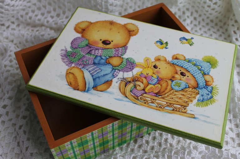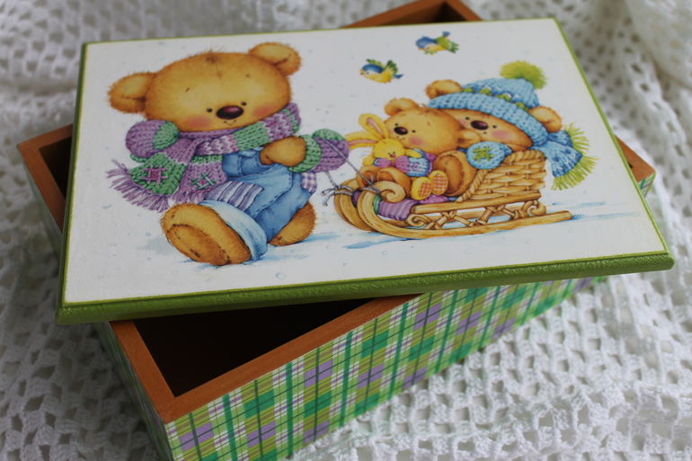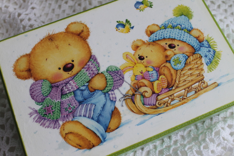 ДекупажВ последнее время намного реже, но всё же иногда я ещё участвую в обменах.И стараюсь делать подарочки от души.Вот и в этот раз мне нужно было сделать подарок на Д/р девочки, которая очень любит мишек. Как-то не сразу я это поняла, и первоначально подарок планировался совсем другого плана, но хоть и с опозданием, в итоге получились вот эти работы...