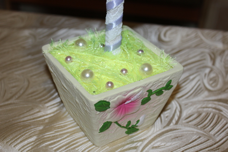 Праздник состоится в четверг. ну а мамам было заранее дано задание сделать что-нибудь своими руками...И вот здесь я начала ломать голову.. шить не умею, вязать тоже.. На ум пришло одно, сделать топиарий..
