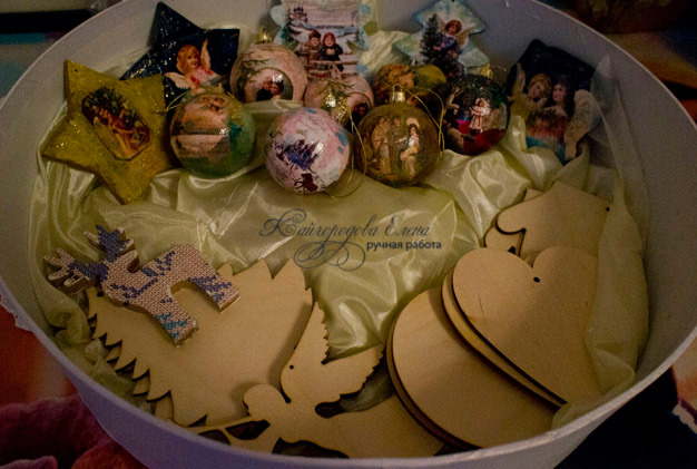В этом году меня мучают глобальные планы, задекупажить игрушек 40-50) Пока готовы 10 штук. Под катом несколько фото волшебной коробки с игрушками