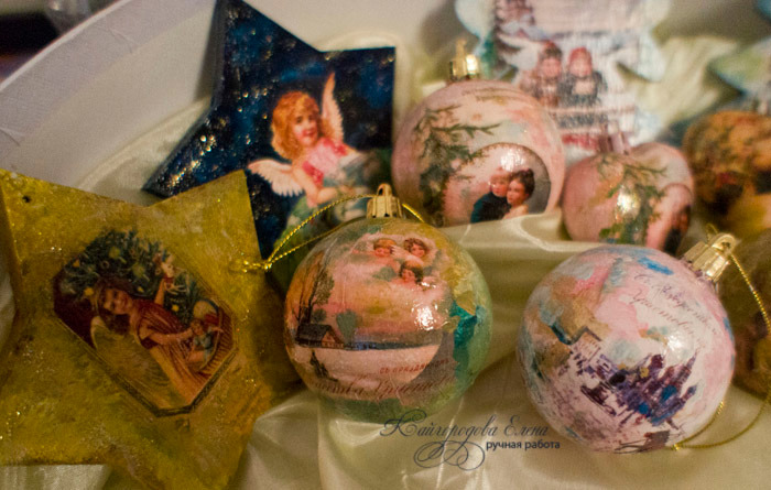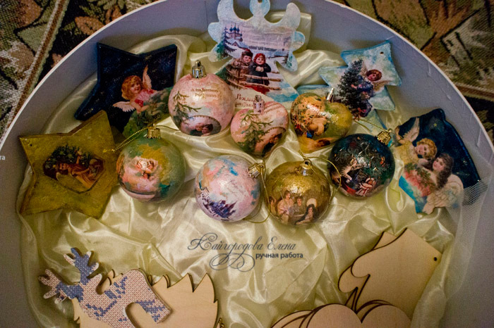 ДекупажВ этом году меня мучают глобальные планы, задекупажить игрушек 40-50) Пока готовы 10 штук. Под катом несколько фото волшебной коробки с игрушками