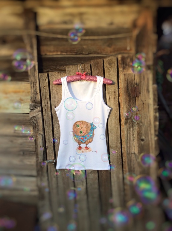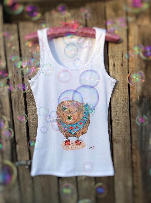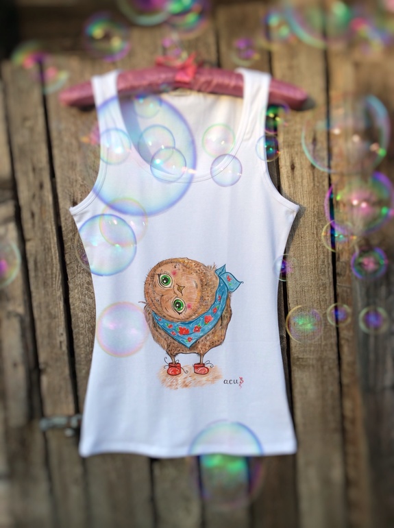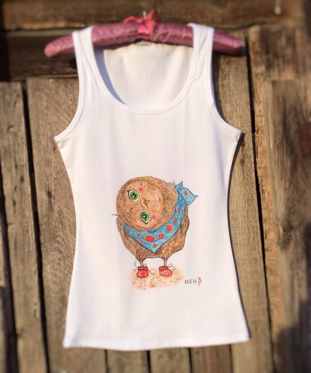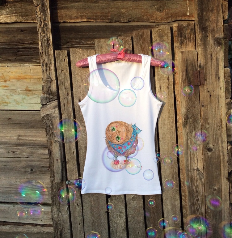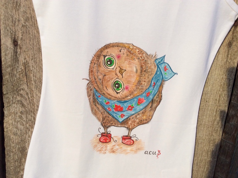 Роспись по ткани, батикФутболочка для интересной и артистичной девушки, любительницы совушек Инги Пальцер. Но с небольшими моими цветовыми изменениями!