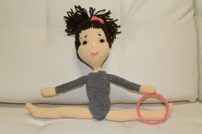 Так делала блондинку, а гимнастку только голову вязала по такому принципу, и то удаляла некоторые ряды,остальное вязала на угад, методом тыка, ничего не записывала