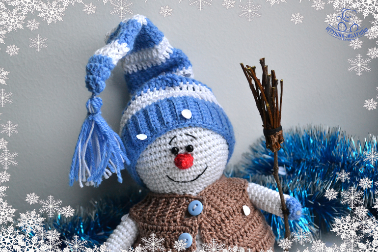 Амигуруми (вязаные игрушки)Снеговик письмо шлет другу: