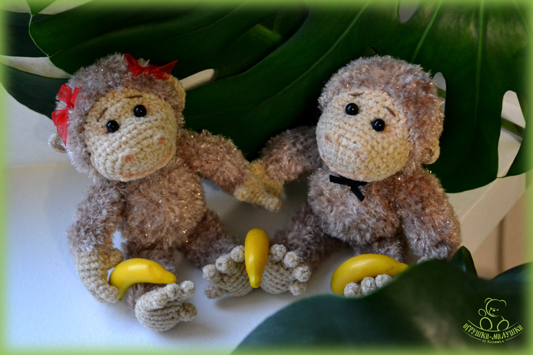 Связаны мартышки из велюровой пряжи и пряжи Ализе Бриз, средне-плотненько набиты синтепоном, приятненько мягенькие, глазки-бусинки.