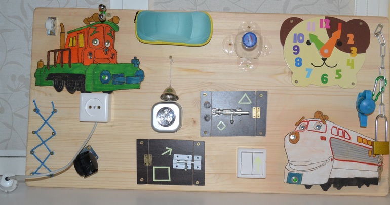 Досочку мы делали для 1,5-годовалого мальчика, который тащится от паровозиков "Чаггинтон", отсюда и тематика! Малыш увидит ее только завтра,надеюсь ему понравится! Нам с папой работа принесла кучу удовольствия, а главное, мы все делали вместе! Теперь мы как сапожники без сапог))) Следующая досочка будет для нашей принцесски!) Я уже продумываю дизайн) Какой же это кайф, когда занимаешься тем, что действительно приносит удовольствие!