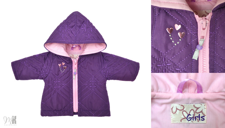 Пальто из курточной стежки, застегивается на молнию, украшено стразами.![]()