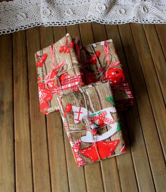 И (спасибо Леночке из Ставрополя) полотенца вафельные новогодние, сшила подругам для кухни. Лена прислала мне ткань, вот так я их "упаковала" попарно))