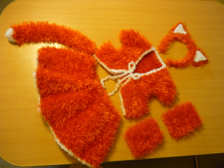 второй НГ костюм в моей практике, первый вязала немного другой(по своему тоже красивый) в прошлом году на НГ для доченьки, но там юбочка была из фатина с блестками, а на голову-шапочка Лисы вязаная с мордочкой, на этот раз попросили ободочек и гетры: