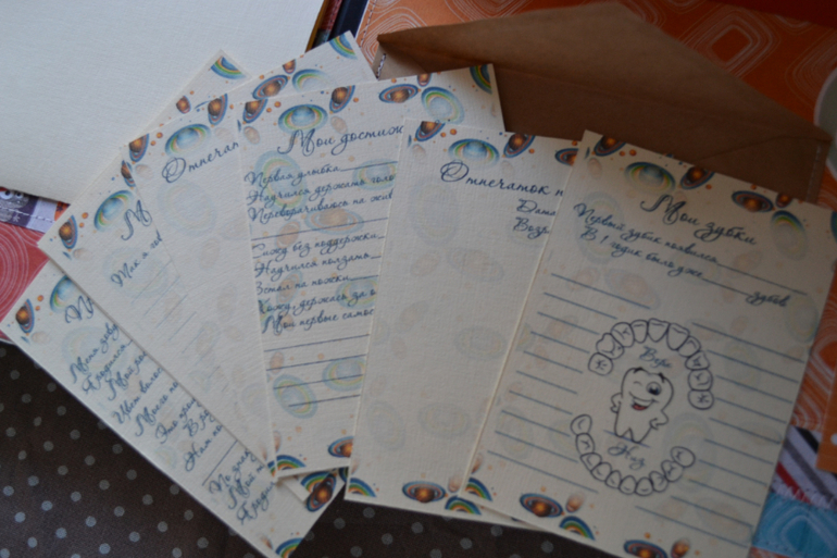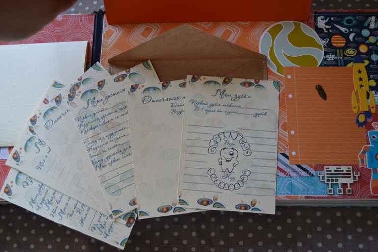 в специальном конверте - есть карточки развития- то же кстати космические))