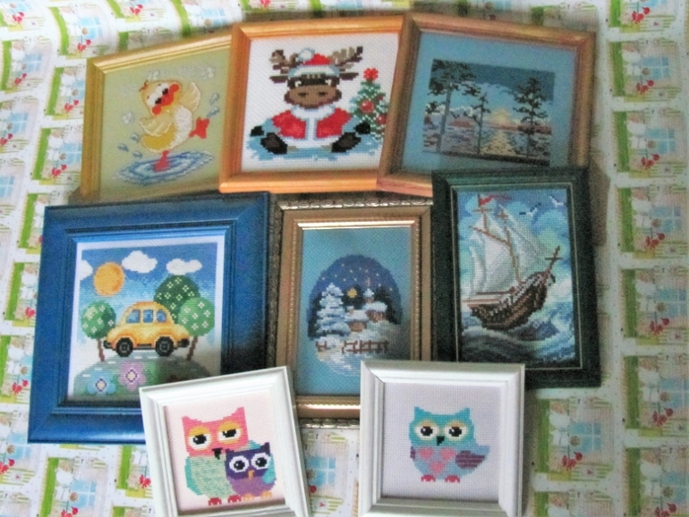 Вот такие маленькие, но ооочень симпатичные картинки вышила и оформила моя двоюродная сестра) Заглядываем под кат кому интересно)