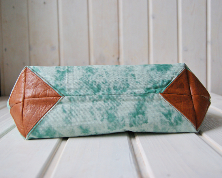1. Мягкая сумка, сшита из джинсы, уголки оформлены кожзамом