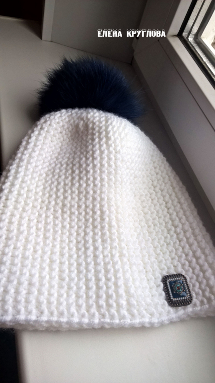 Дошли наконец-то руки до себя.Решила утеплиться. Шапка связана спицами поперечным вязанием укороченными рядами. Пряжа Нако Арктик, спицы №6. Шапка вязалась под синий пуховик с синей меховой опушкой на капюшоне. В отделке пуховика присутствует белый цвет,поэтому было решено вязать белую шапку с синим помпоном. Под катом много фото